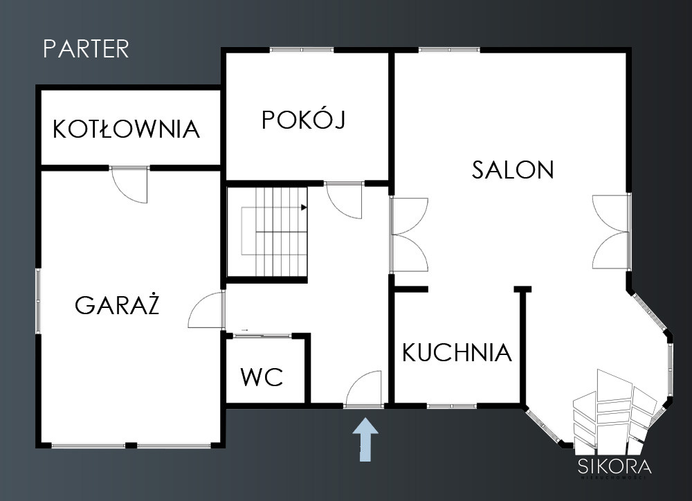 Zarówno dla wygody, jak i bezpieczeństwa, garaż jest bezpośrednio połączony z funkcjonalną kotłownią/pomieszczeniem technicznym, co zapewnia dyskretny dostęp do systemów grzewczych i minimalizuje dystans serwisowy.