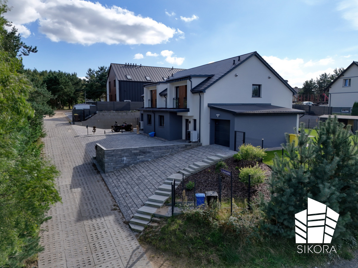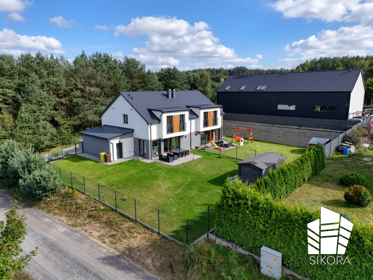 Budynek w zabudowie bliźniaczej oddany do użytku w 2024 roku. Wykonany został z innowacyjnych materiałów, najwyższej jakości. Wszystkie elementy łączy wspólna idea: stworzenia niepowtarzalnego miejsca do komfortowego życia, w którym znajduje się przestrzeń do odpoczynku oraz różnorodnych aktywności. Przed budynkiem znajdziemy prywatne dwa miejsca parkingowe na podjeździe. W bryle budynku znajduje się przestronny jednostanowiskowy garaż wraz z awaryjnym gniazdem pod agregat. oraz bezpośrednim przejściem do części mieszkalnej.