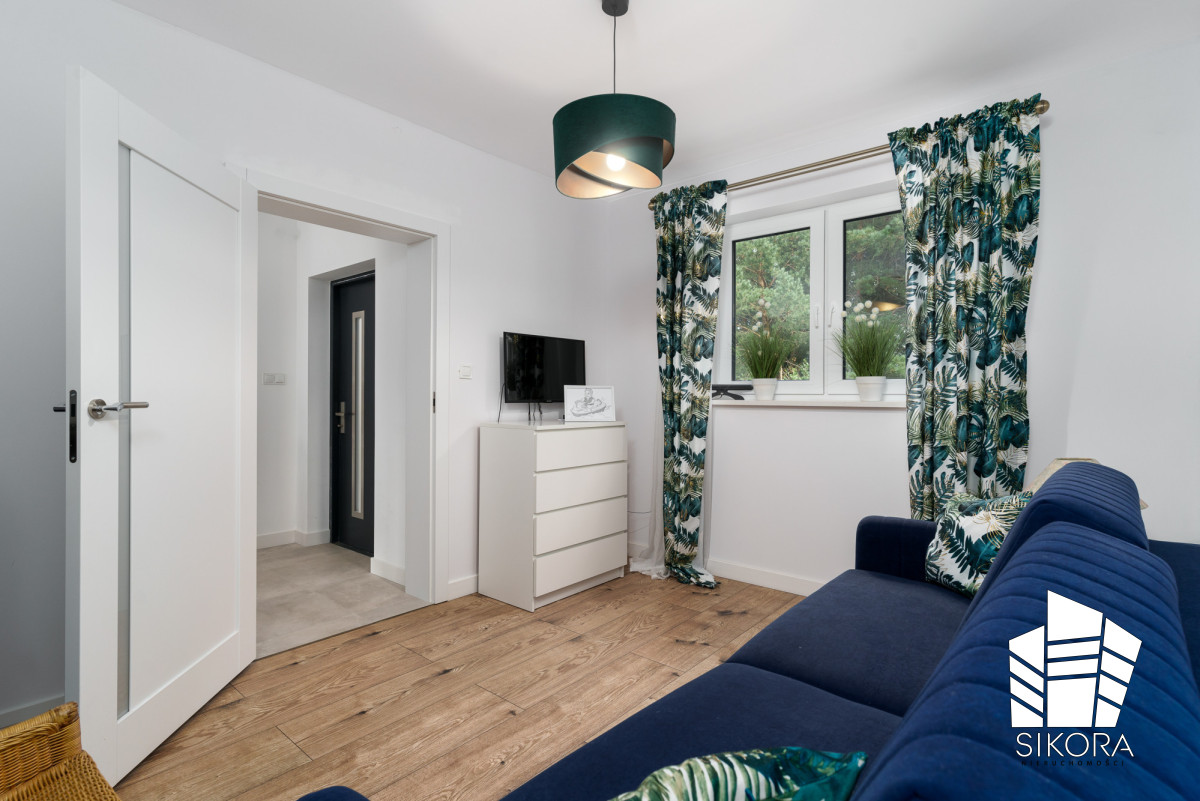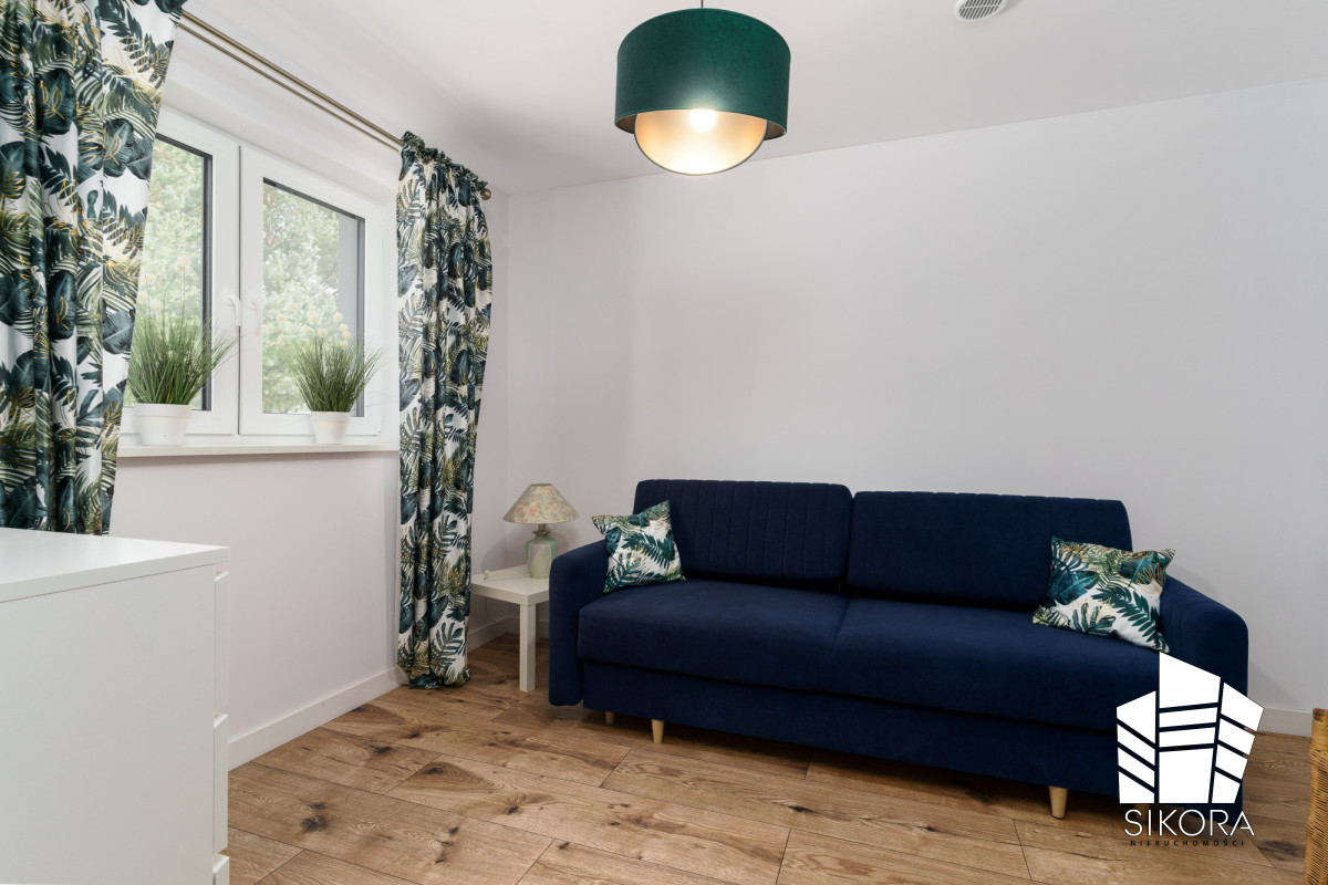 Z racji, iż pokój nie jest zagospodarowany w meble, bez problemu zaaranżujemy go jako dodatkową sypialnie, pokój gościnny, kącik zabaw bądź gabinet. Wszystko zależy od potrzeb nowych właścicieli i od ich wyobraźni.