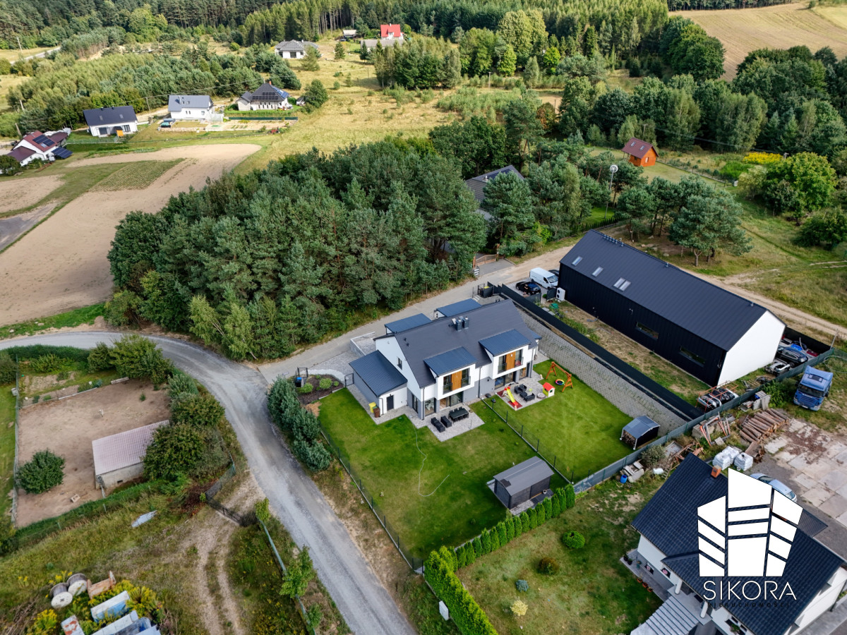 Budynek w zabudowie bliźniaczej oddany do użytku w 2024 roku. Wykonany został z innowacyjnych materiałów, najwyższej jakości. Wszystkie elementy łączy wspólna idea: stworzenia niepowtarzalnego miejsca do komfortowego życia, w którym znajduje się przestrzeń do odpoczynku oraz różnorodnych aktywności. Przed budynkiem znajdziemy prywatne dwa miejsca parkingowe na podjeździe. W bryle budynku znajduje się przestronny jednostanowiskowy garaż wraz z awaryjnym gniazdem pod agregat. oraz bezpośrednim przejściem do części mieszkalnej.