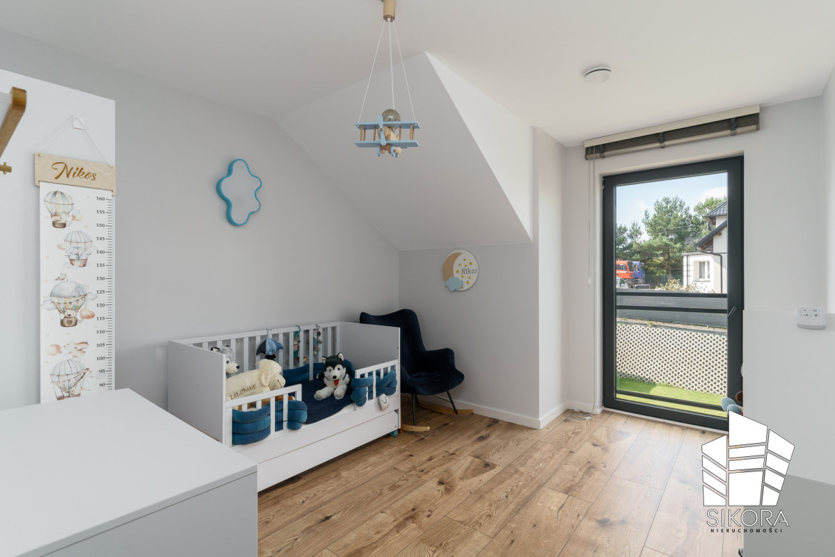 Pokój na piętrze służył właścicielom jako pokój dziecięcy. Znajdziemy w nim komodę z szafą na ubrania, w której zmieścimy dosłownie wszystko.