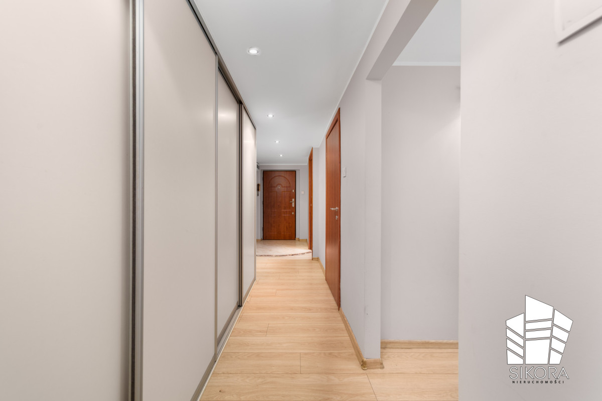 Przestronny i ustawny przedpokój stanowiący solidną bazę do aranżacji. Dzięki neutralnej kolorystyce ścian i podłóg, nowi właściciele zyskują duży potencjał do natychmiastowego odświeżenia lub pełnej metamorfozy wnętrza zgodnie z własnymi upodobaniami. Pomieszczenie jest już wyposażone w dużą, pojemną szafę przesuwną, co oznacza oszczędność kosztów w ramach planowanego remontu. Solidne drewniane drzwi wewnętrzne są w dobrym stanie, ale można je łatwo przemalować lub wymienić, by nadać całości nowy charakter. To doskonała propozycja dla osób, które cenią dobrą bazę w świetnym stanie technicznym, ale chcą personalizować i urządzić przestrzeń od podstaw, bez konieczności prowadzenia uciążliwych i kosztownych prac strukturalnych.