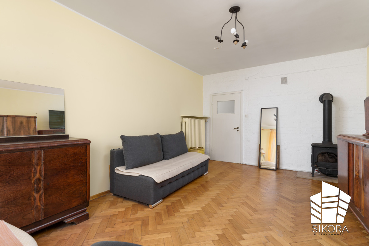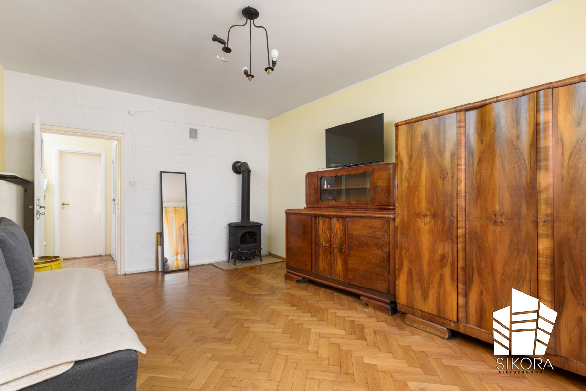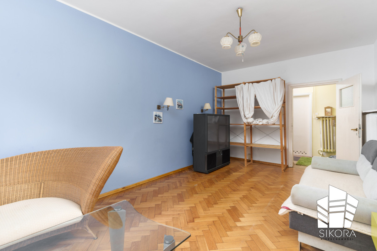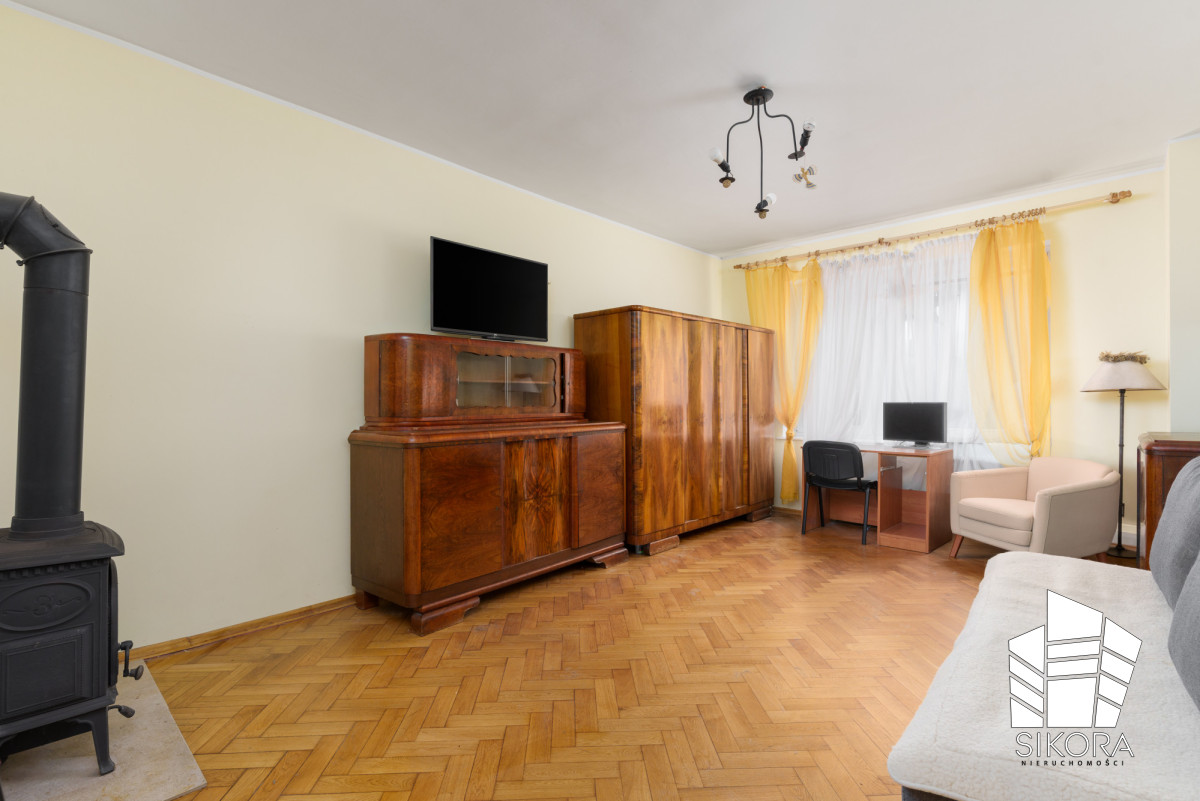Na podłogach zachowany został elegancki parkiet, a ściany wykończone są gładzią. Mieszkanie jest gotowe do zamieszkania po odświeżeniu, jednocześnie daje możliwość aranżacji wnętrza zgodnie z własnym stylem i potrzebami. Dzięki swojej charakterystyce może być również bez większych nakładów finansowych przeznaczone na wynajem.