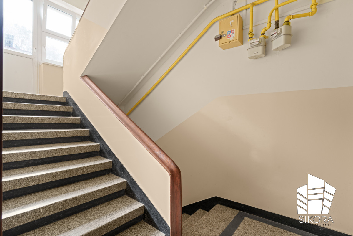 Mieszkanie mieści się w przedwojennej kamienicy, utrzymanej w bardzo dobrym stanie technicznym i wizualnym. Odnowiona klatka schodowa oraz zadbane części wspólne podkreślają dbałość mieszkańców o przestrzeń, w której żyją.