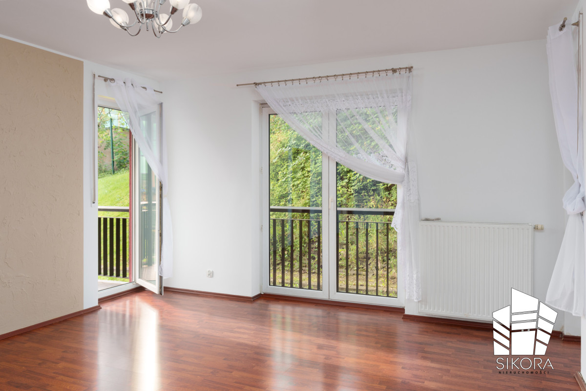 - przestronnego salonu z wyjściem na balkon i dodatkowy taras - unikalny atut tej nieruchomości,